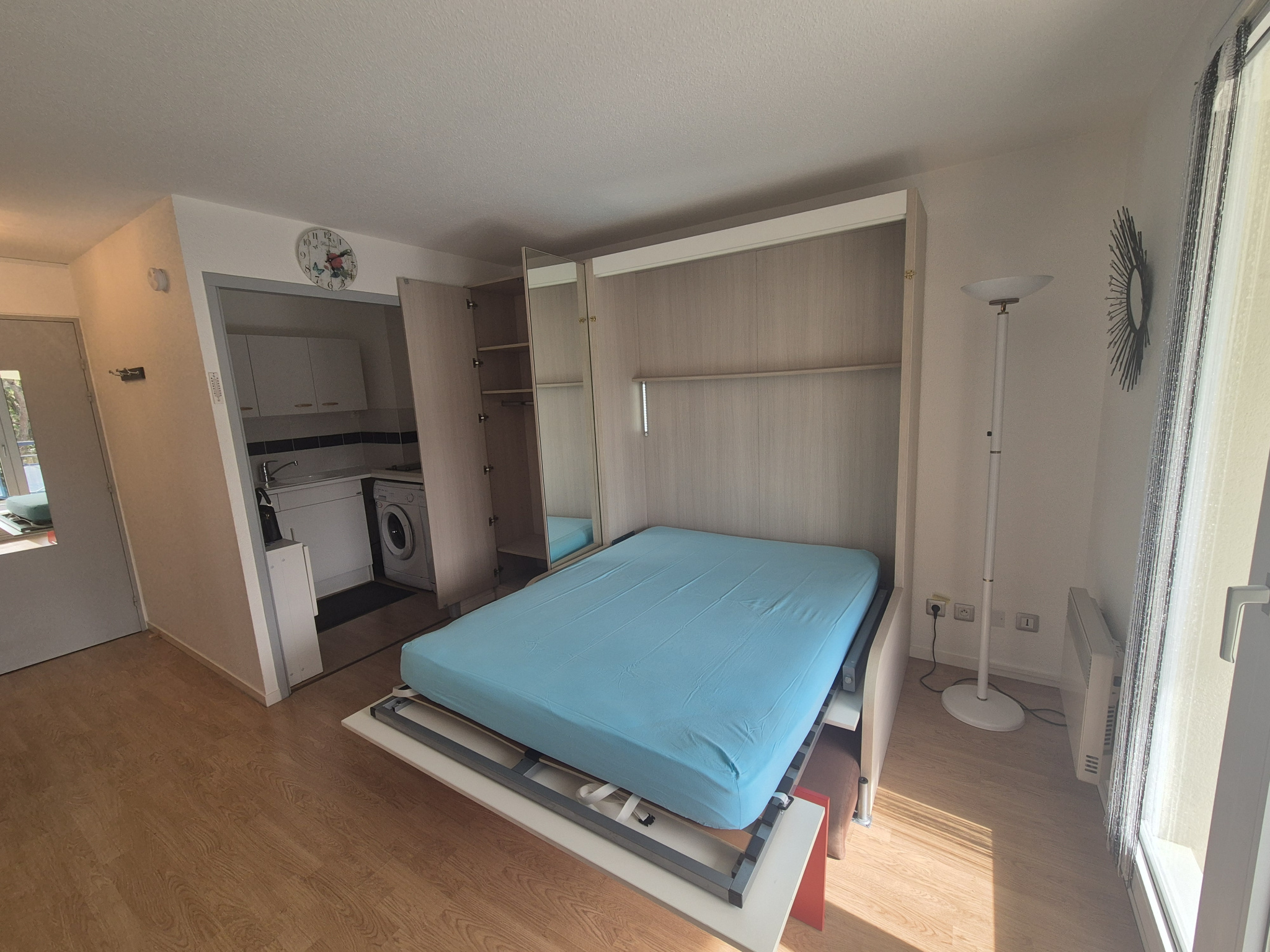 PONTAILLAC. Dans résidence avec piscine, à quelques pas de la plage et des commerces, bel appartement de 25 m² offrant pièce de vie avec couchage double en lit pont ouvrant sur terrasse, 1 chambre, cuisine, salle de bains, wc. Les informations sur les risques auxquels ce bien est exposé sont disponibles sur le site géorisques : www.georisques.gouv.fr