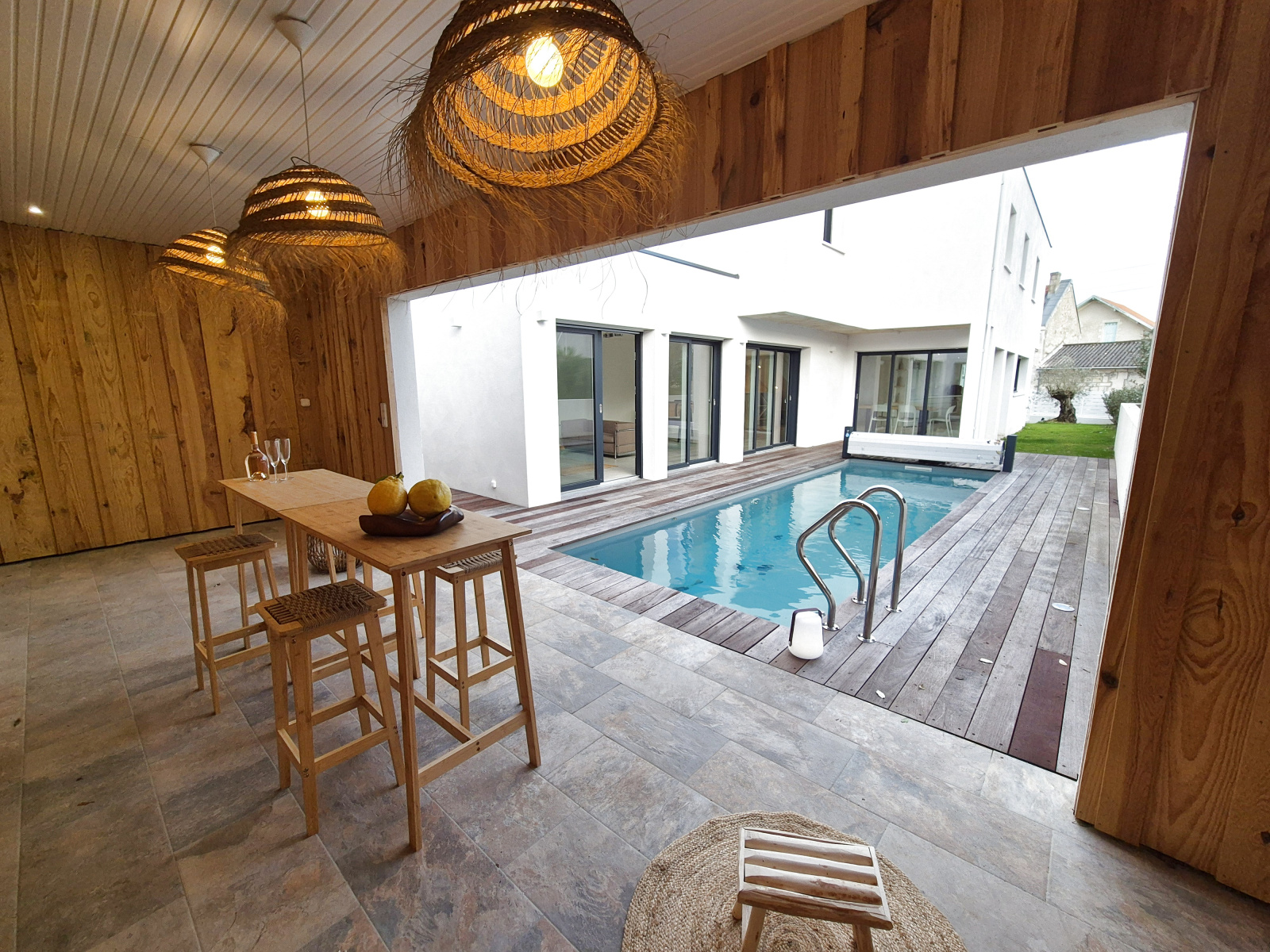 VAUX SUR MER PONTAILLAC. NOUVEAUTE et seulement à l'Agence de Pontaillac. Superbe maison neuve de 2024 à quelques pas de la plage et des commerces. Elle se compose d'une entrée, belle pièce de réception cuisine US ouvrant sur terrasse et piscine, 1 suite parentale de plain pied avec salle d'eau et dressing, wc, cellier. A l'étage : palier, 3 chambres dont 1 avec balcon, salle d'eau, wc.