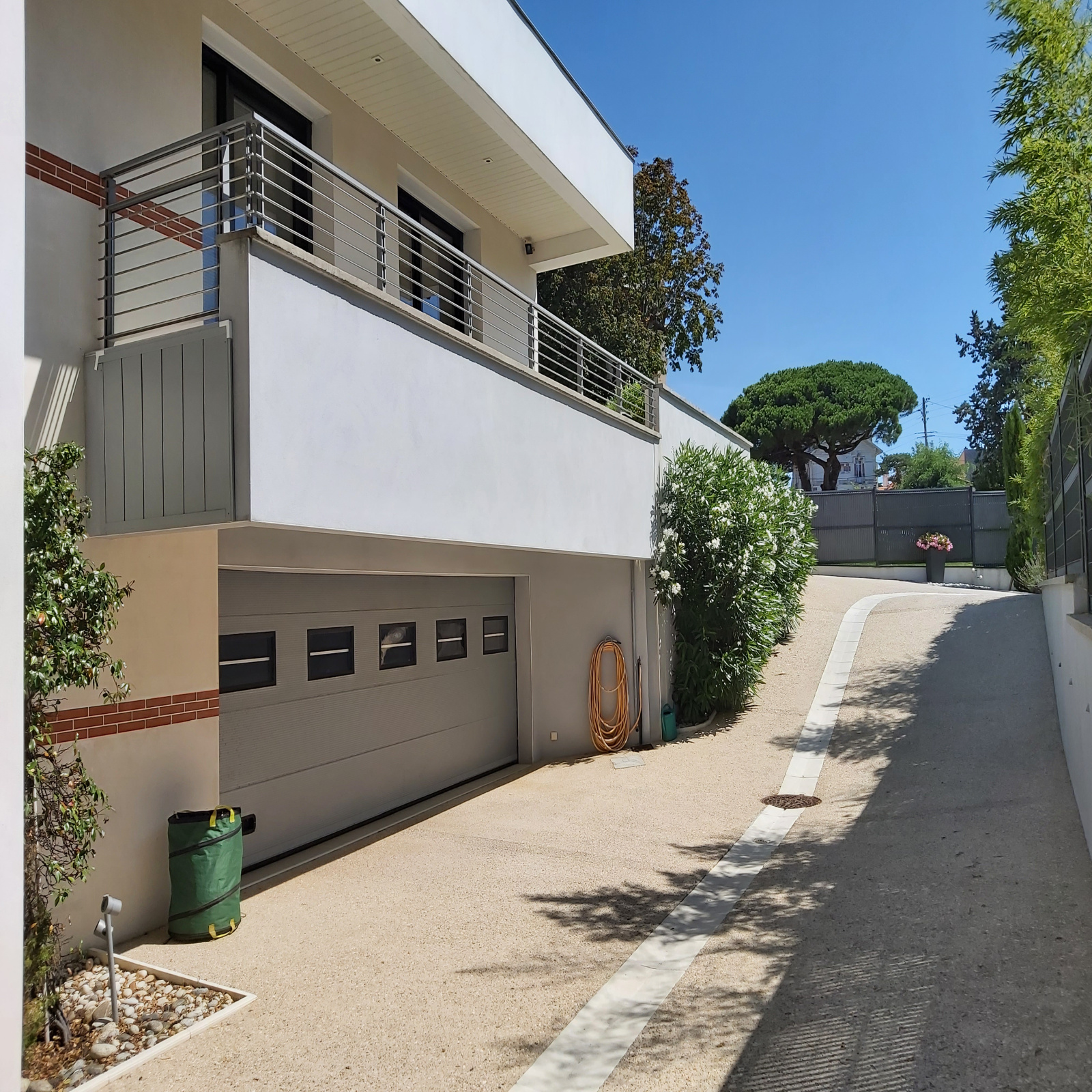 NOUVEAUTE. RARE à PONTAILLAC. A seulement 400 m de la plage et des commerces, superbe Villa contemporaine de 2014 offrant entrée, pièce de réception cuisine américaine, 2 chambres de plain pied dont 1 suite parentale, wc. Etage : mezzanine, 2 chambres, salle d'eau, wc, terrasse aperçu mer. Garage en sous-sol de 98 m², cave, buanderie. Terrain arboré de 850 m². Les informations sur les risques auxquels ce bien est exposé sont disponibles sur le site géorisques : www.georisques.gouv.fr